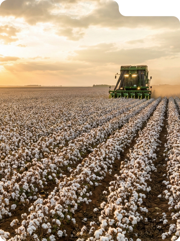 Do desagregador ao fardo pronto, nossa missão é garantir a pureza absoluta do seu algodão.